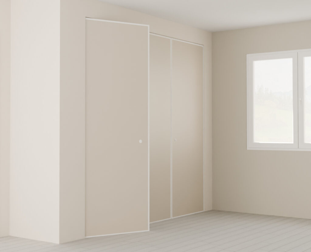 Même si elle est pratique et simple à installer, elle nécessite un espace de dégagement sur l’avant pour garantir le bon accès au rangement. C’est pourquoi ce style de porte est idéal dans les petites pièces nécessitant de ranger beaucoup de choses telles qu’un hall d’accueil, une entrée, une petite chambre, une salle de bain, ou tout autre espace un peu étroit qui ne pourrait pas accueillir de portes coulissantes.
